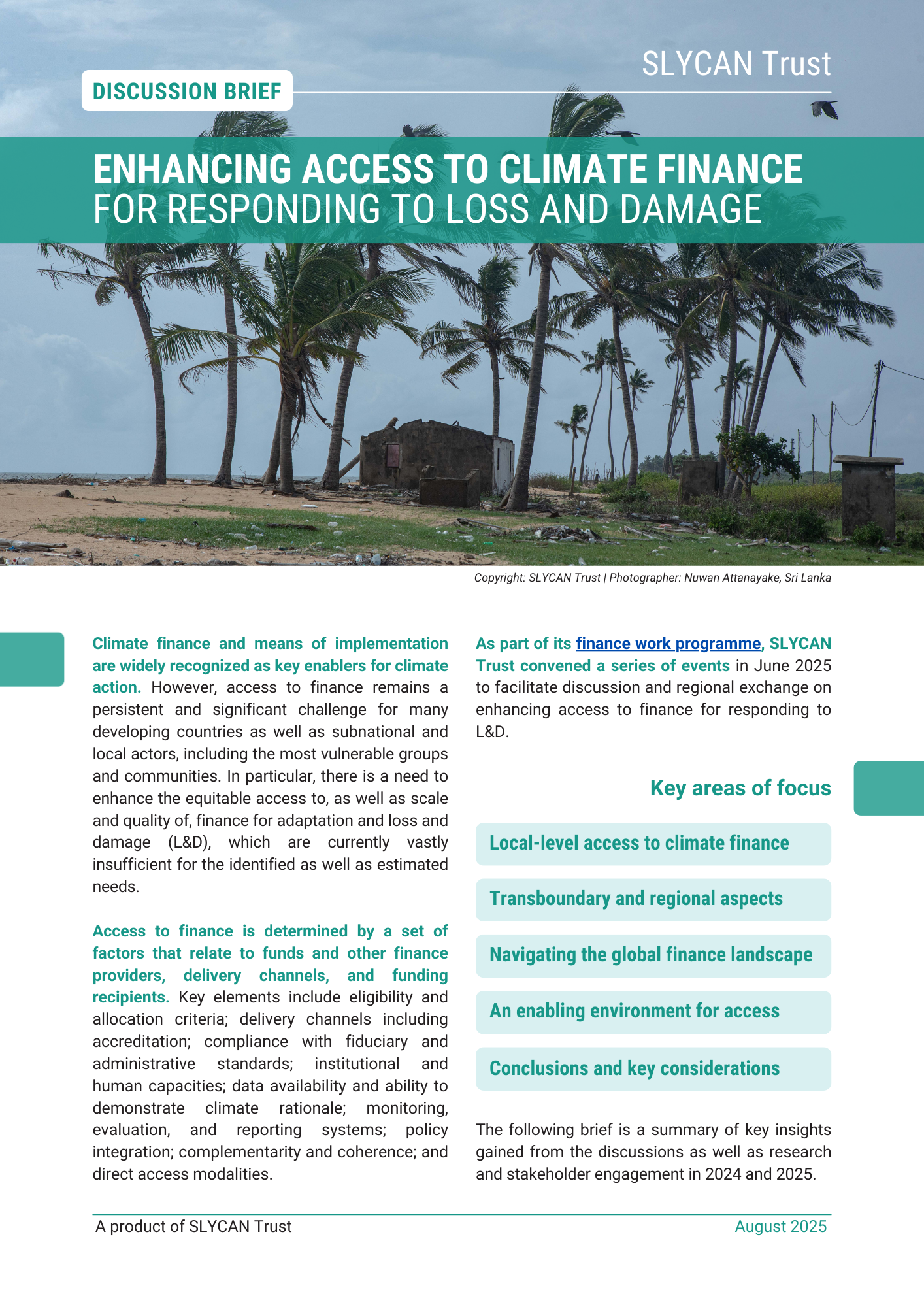 As part of its finance work programme, SLYCAN Trust convened a series of events in June 2025 to facilitate discussion and regional exchange on enhancing access to finance for responding to L&D.