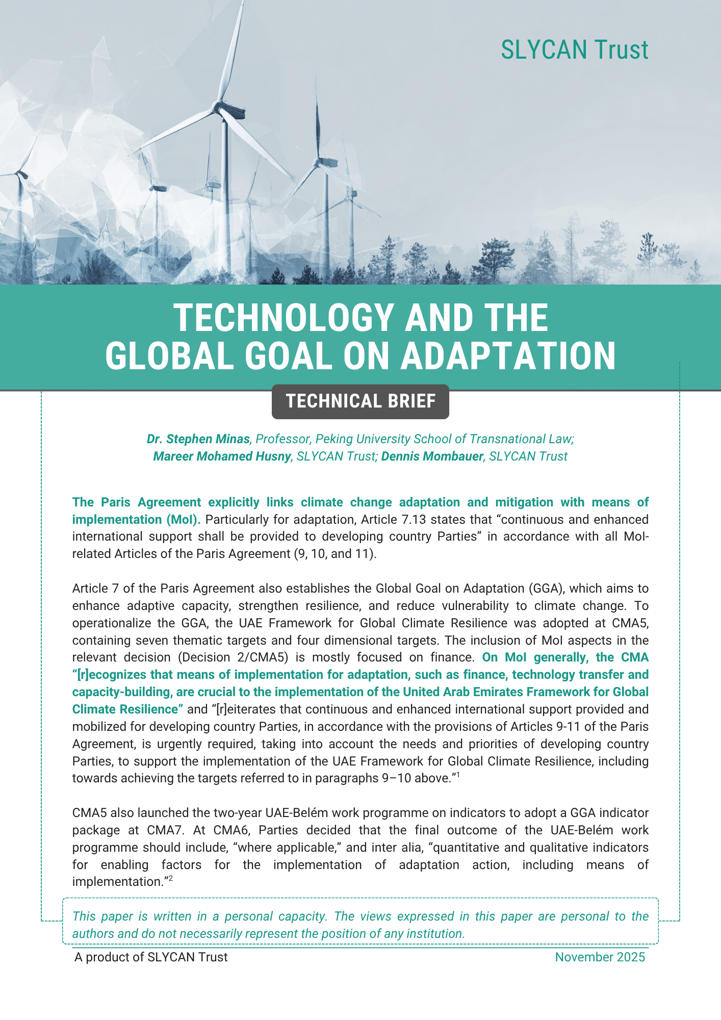 This technical brief aims to provide an outline of the UNFCCC’s Technology Mechanism as well as important considerations and possibilities related to the inclusion of climate technology as part of MoI in the GGA indicators.